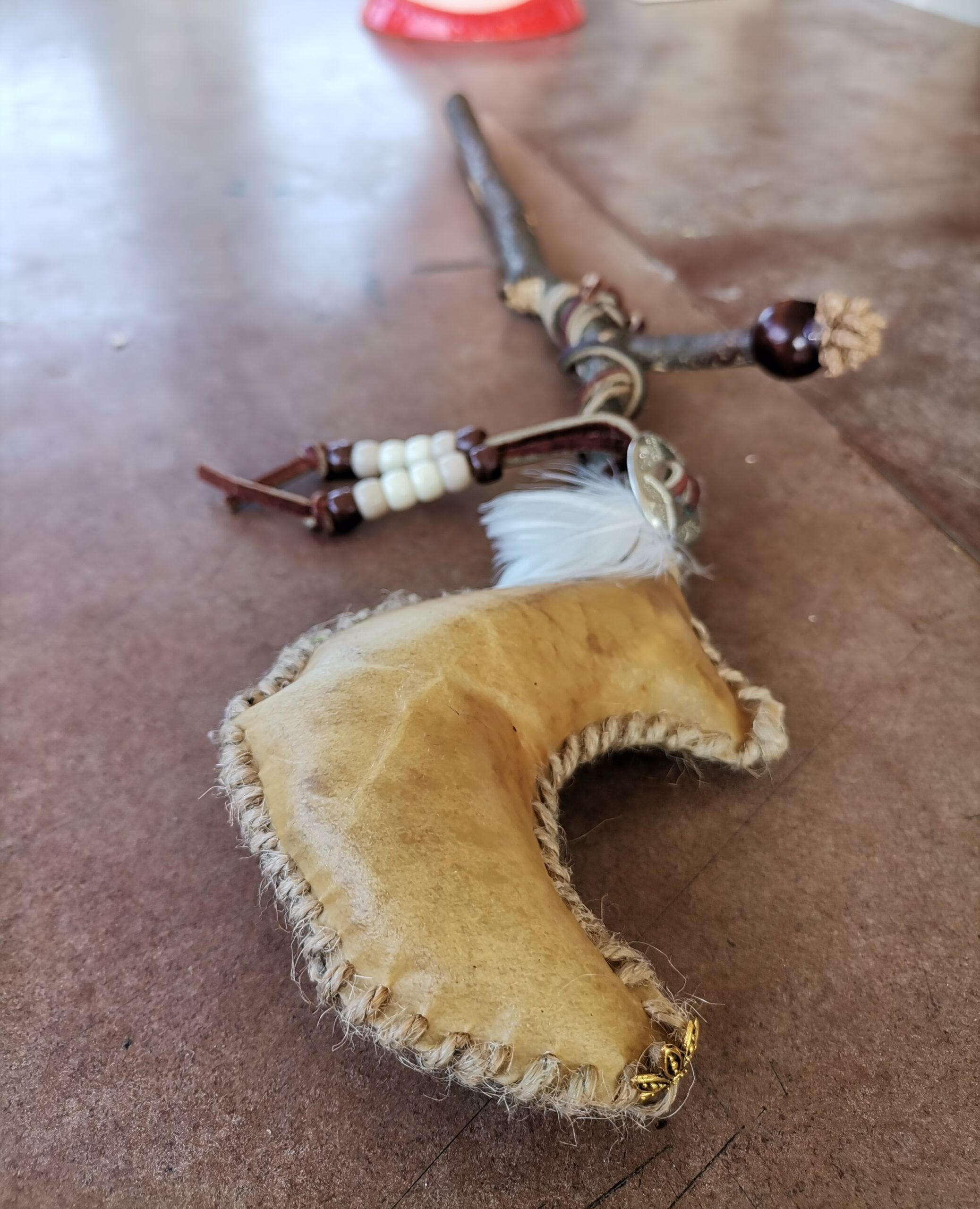 Heute stellst du deine Schamanenrassel in Form des Mondes selbst her. Dazu lochst du deine Haut, schnürst fein und bestimmt deine Mondrassel. Mit viel Achtsamkeit bearbeitest du deinen Holzstock, vielleicht bemalst du ihn – verzierst diesen mit Federn, Fell oder bunten Schnüren. Danach befüllst du deine Rassel und verbindest Stock und Kopf. Der Räucherfächer besteht zum Großteil aus Federn. Diese Federn dienen, dir den Rauch aus deiner Feuerschale oder Räucher-Stick dort hin zu schicken, wo dieser gebraucht wird. Du schickst damit den Rauch in die obere Welt. Falls du bereits eine Schamanen-Trommel dein Eigen nennst und einen neuen Schlegel möchtest oder gar einen Zweiten zu deinem bereits vorhandenen, darfst du dich willkommen fühlen, hier mit zu machen. Bringe gerne zu dem Kurs deine Trommel mit.